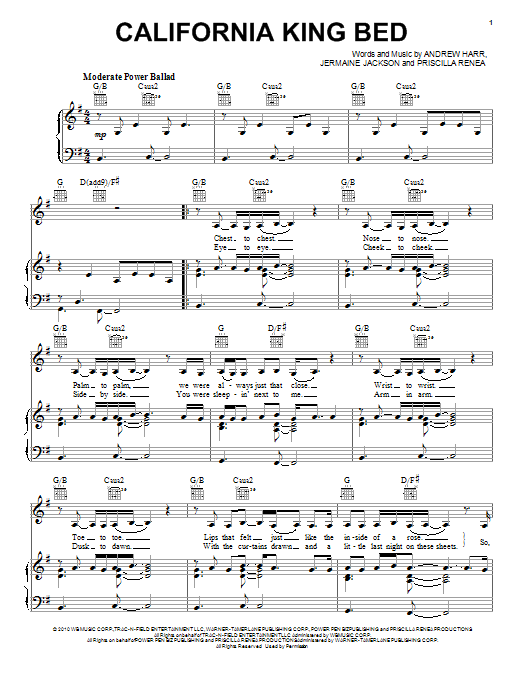 Download or print Rihanna California King Bed sheet music, chords and digital score arranged for Really Easy Piano. This Pop score includes 2 page(s).
