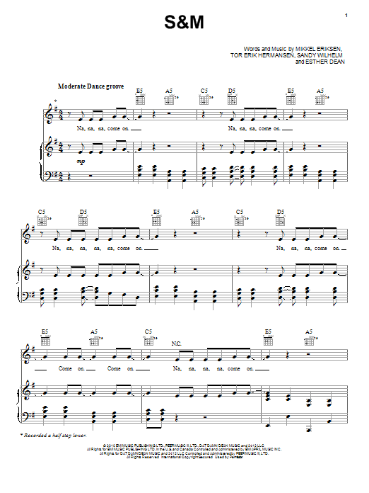 Download or print Rihanna S&M sheet music, chords and digital score arranged for Piano, Vocal & Guitar Chords (Right-Hand Melody). This Pop score includes 8 page(s).