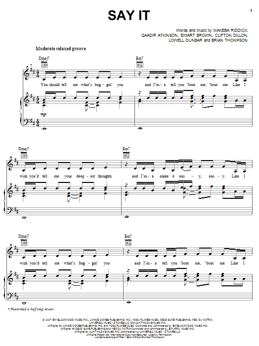 Download or print Rihanna Say It sheet music, chords and digital score arranged for Piano, Vocal & Guitar Chords (Right-Hand Melody). This Pop score includes 8 page(s).
