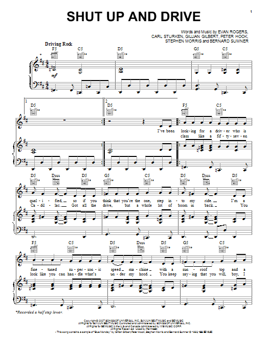Download or print Rihanna Shut Up And Drive sheet music, chords and digital score arranged for Really Easy Piano. This Pop score includes 2 page(s).