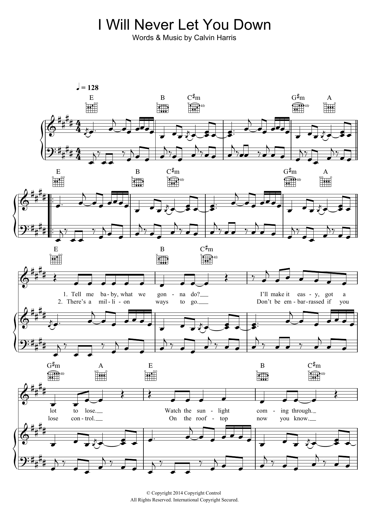 Download or print Rita Ora I Will Never Let You Down sheet music, chords and digital score arranged for Piano, Vocal & Guitar Chords. This Pop score includes 6 page(s).