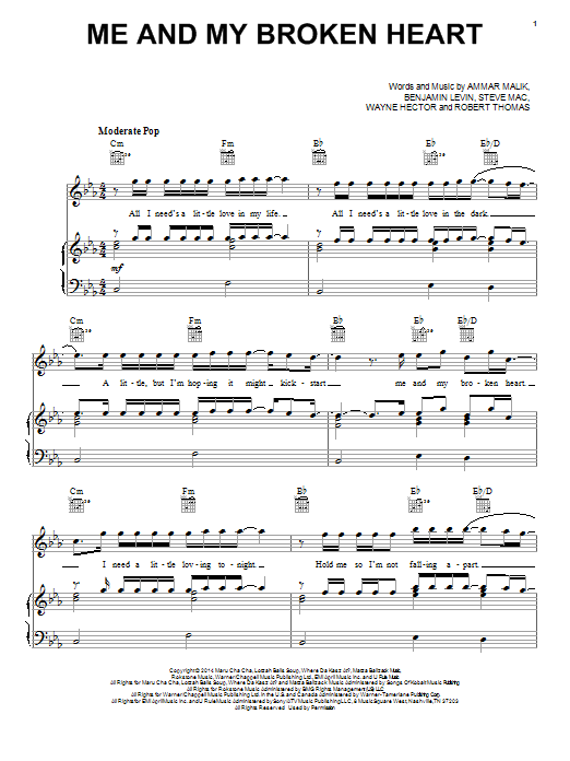 Download or print Rixton Me And My Broken Heart sheet music, chords and digital score arranged for Piano, Vocal & Guitar Chords (Right-Hand Melody). This Pop score includes 5 page(s).