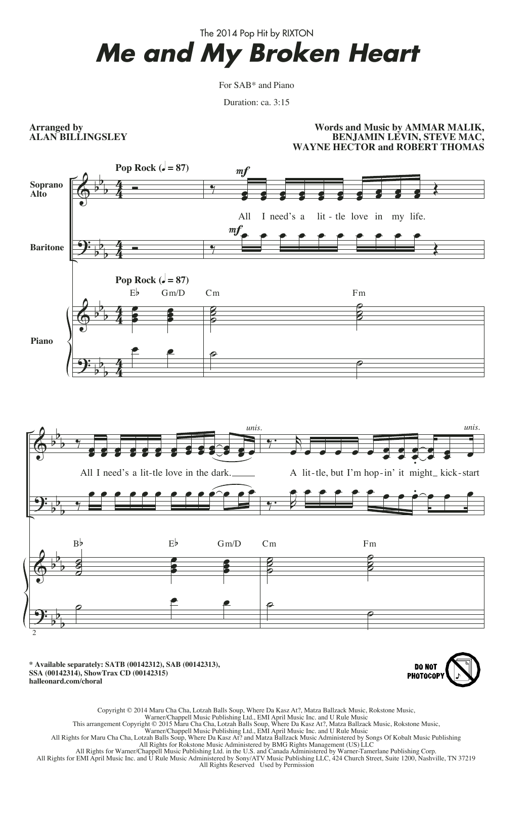 Download or print Alan Billingsley Me And My Broken Heart sheet music, chords and digital score arranged for SAB Choir. This Pop score includes 11 page(s).