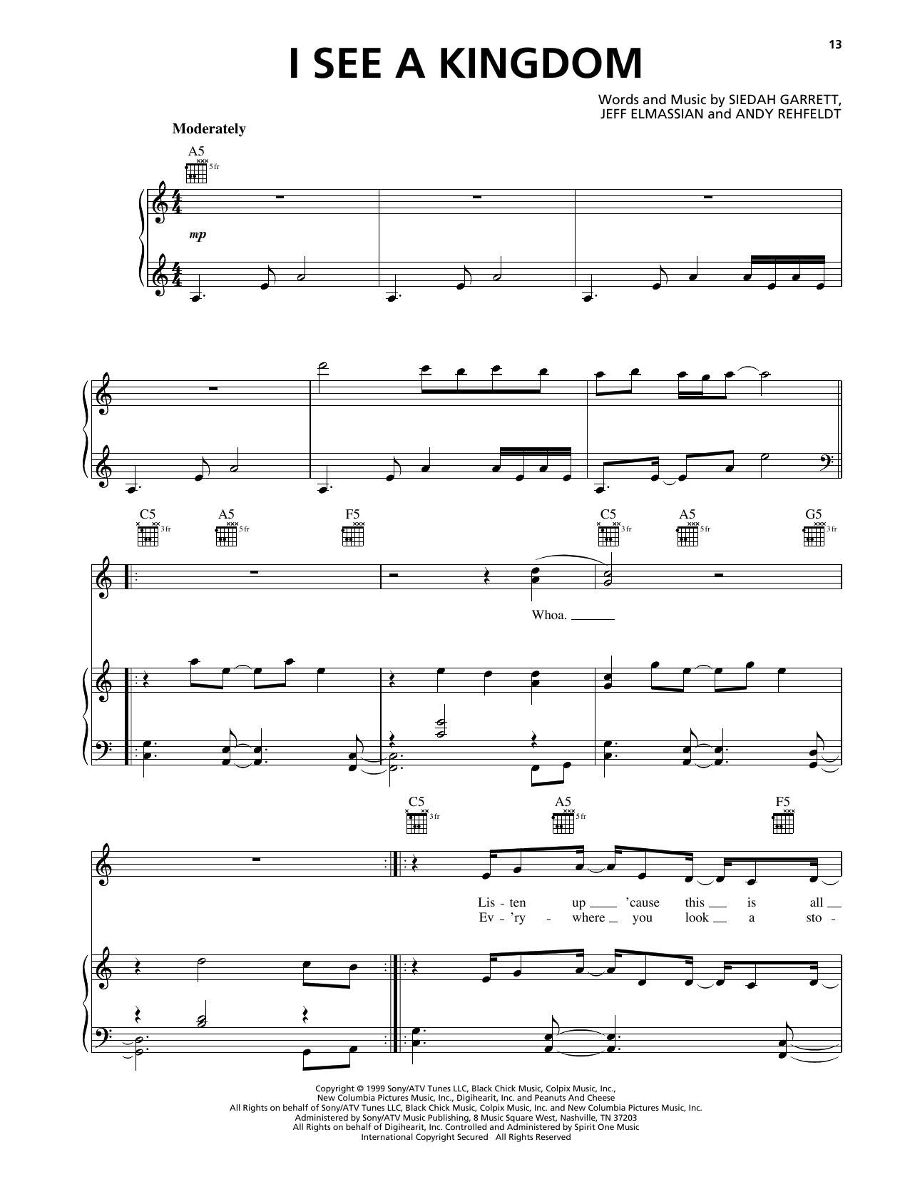 Download or print Rob Mathes and Vanessa Williams I See A Kingdom (from The Adventures Of Elmo In Grouchland) sheet music, chords and digital score arranged for Piano, Vocal & Guitar Chords (Right-Hand Melody). This Children score includes 5 page(s).