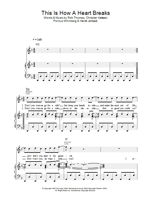Download or print Rob Thomas This Is How A Heart Breaks sheet music, chords and digital score arranged for Piano, Vocal & Guitar Chords. This Pop score includes 6 page(s).