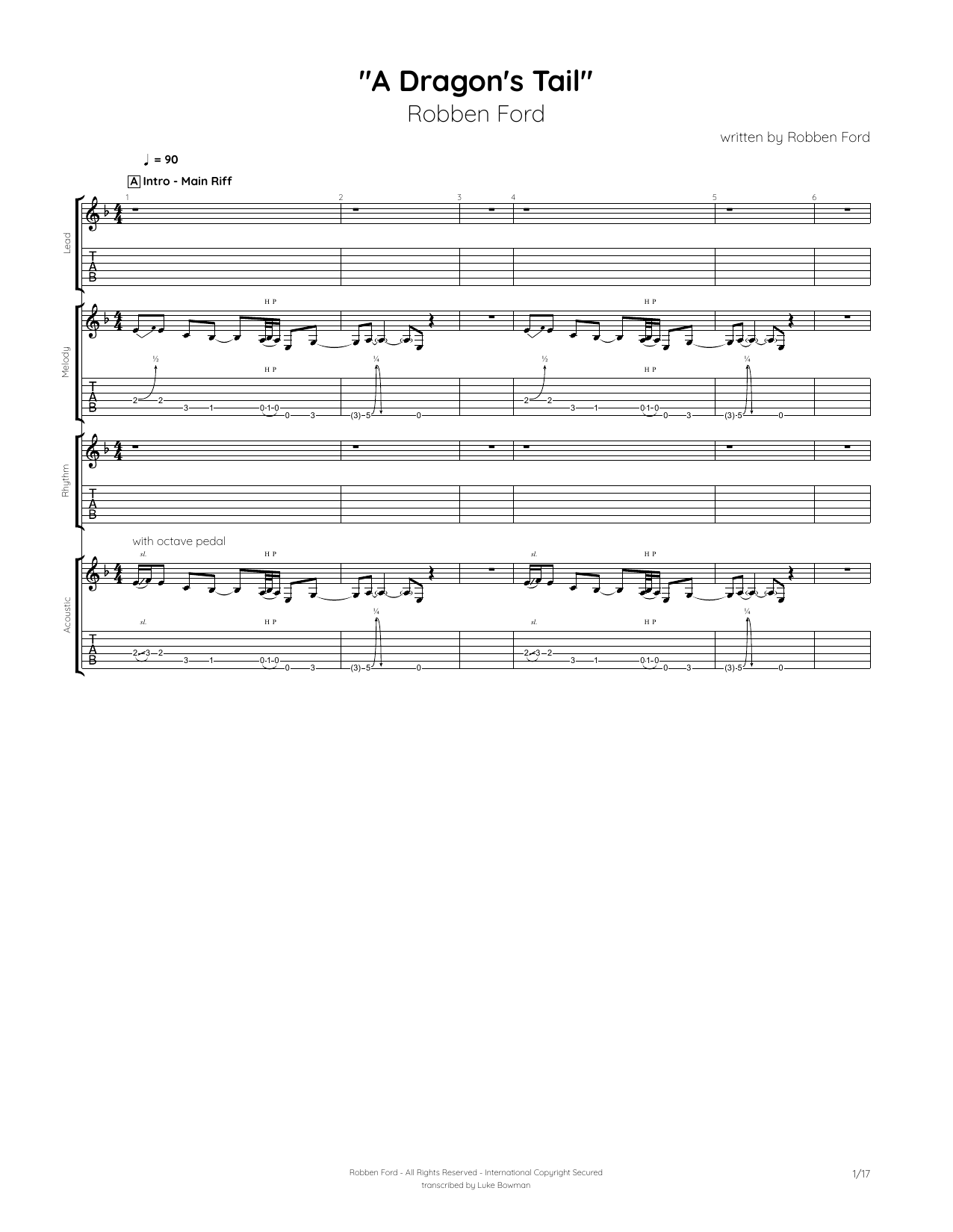 Download or print Robben Ford Dragon's Tail sheet music, chords and digital score arranged for Guitar Tab. This Jazz score includes 17 page(s).