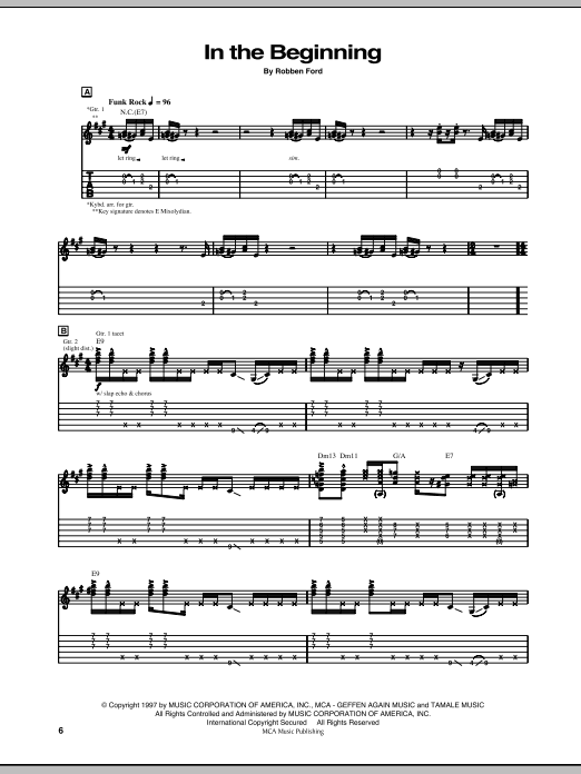 Download or print Robben Ford In The Beginning sheet music, chords and digital score arranged for Guitar Tab. This Pop score includes 13 page(s).