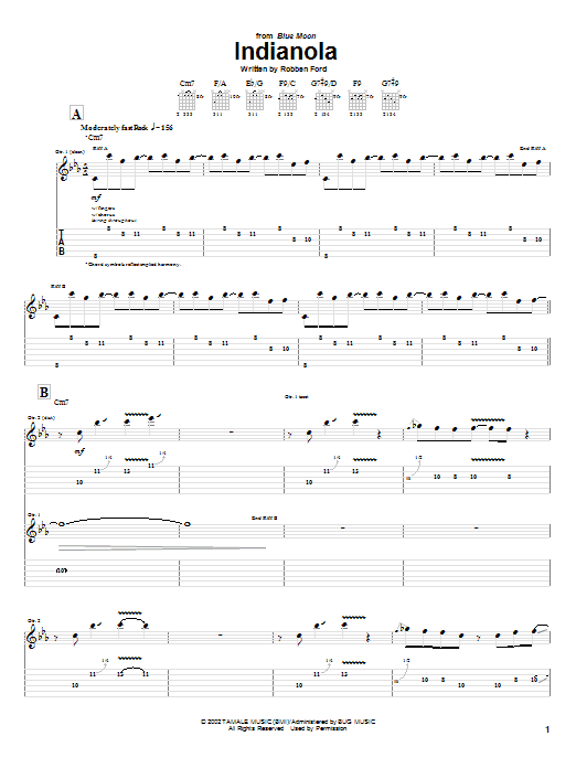 Download or print Robben Ford Indianola sheet music, chords and digital score arranged for Guitar Tab. This Blues score includes 9 page(s).