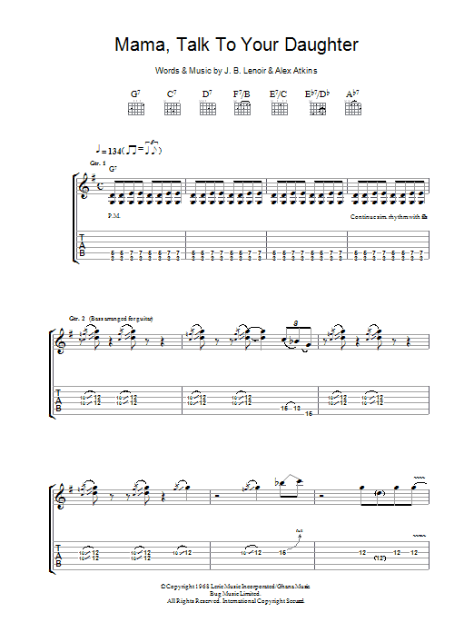 Download or print Robben Ford Mama, Talk To Your Daughter sheet music, chords and digital score arranged for Guitar Tab. This Blues score includes 11 page(s).