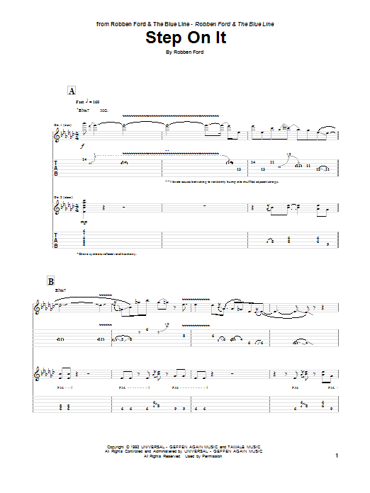 Download or print Robben Ford Step On It sheet music, chords and digital score arranged for Guitar Tab. This Blues score includes 19 page(s).
