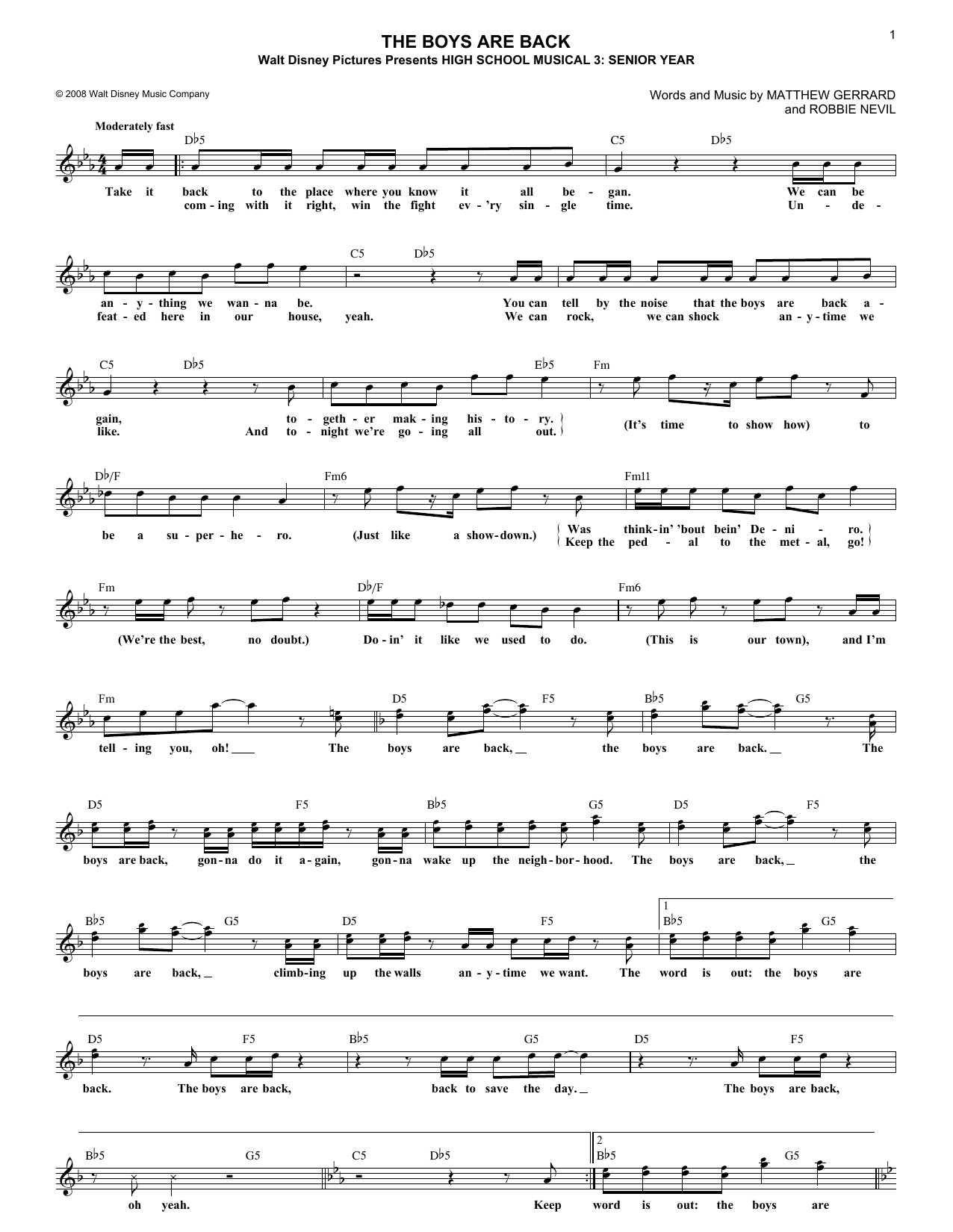 Download or print Robbie Nevil The Boys Are Back sheet music, chords and digital score arranged for Lead Sheet / Fake Book. This Children score includes 2 page(s).