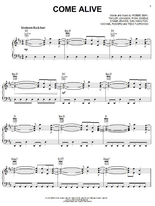 Download or print Robbie Seay Band Come Alive sheet music, chords and digital score arranged for Piano, Vocal & Guitar Chords (Right-Hand Melody). This Christian score includes 7 page(s).