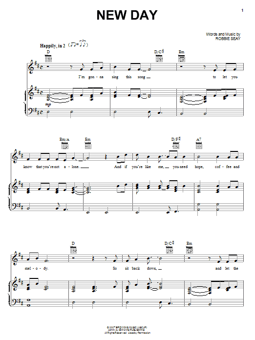 Download or print Robbie Seay Band New Day sheet music, chords and digital score arranged for Piano, Vocal & Guitar Chords (Right-Hand Melody). This Christian score includes 9 page(s).