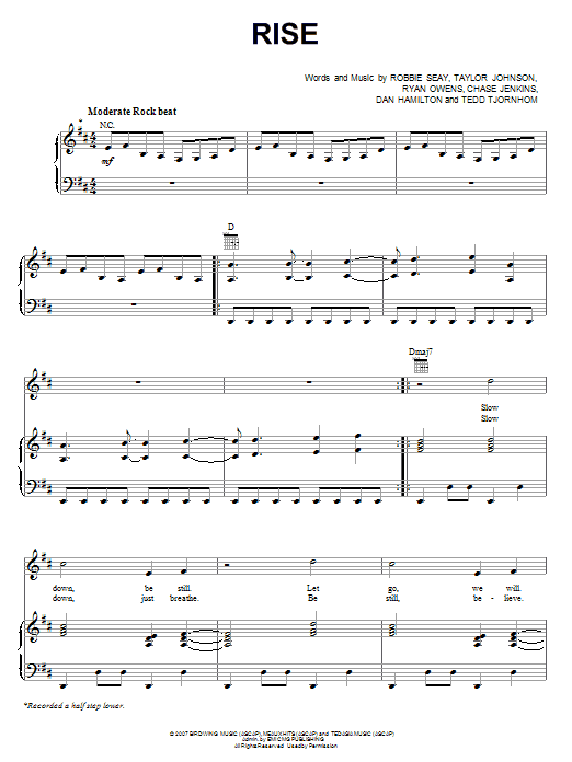 Download or print Robbie Seay Band Rise sheet music, chords and digital score arranged for Piano, Vocal & Guitar Chords (Right-Hand Melody). This Christian score includes 8 page(s).