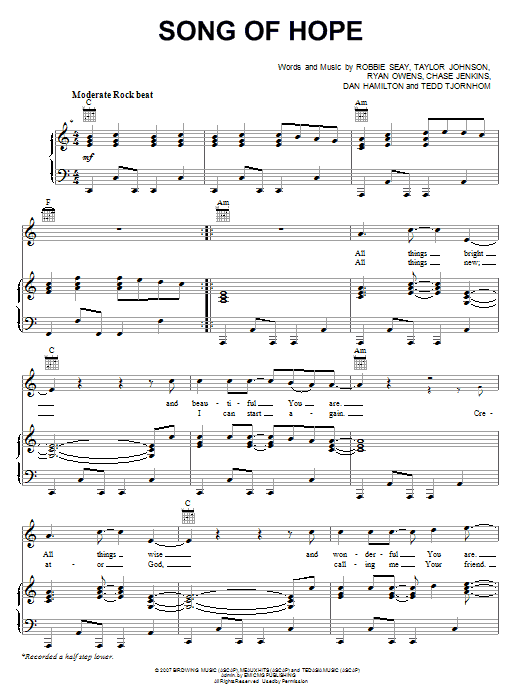 Download or print Robbie Seay Band Song Of Hope sheet music, chords and digital score arranged for Easy Piano. This Christian score includes 6 page(s).