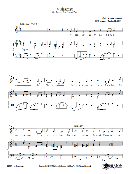 Download or print Robbie Solomon V'sham'ru sheet music, chords and digital score arranged for Piano Solo. This Traditional score includes 3 page(s).