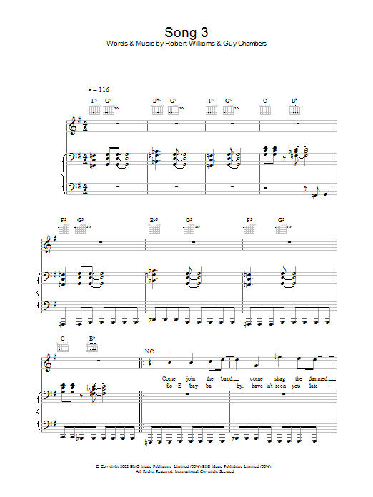 Download or print Robbie Williams Song 3 sheet music, chords and digital score arranged for Lead Sheet / Fake Book. This Pop score includes 3 page(s).