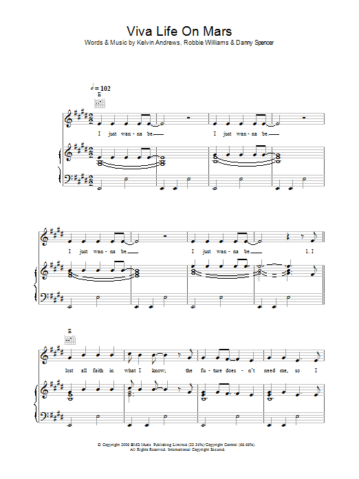 Download or print Robbie Williams Viva Life On Mars sheet music, chords and digital score arranged for Piano, Vocal & Guitar Chords. This Pop score includes 7 page(s).