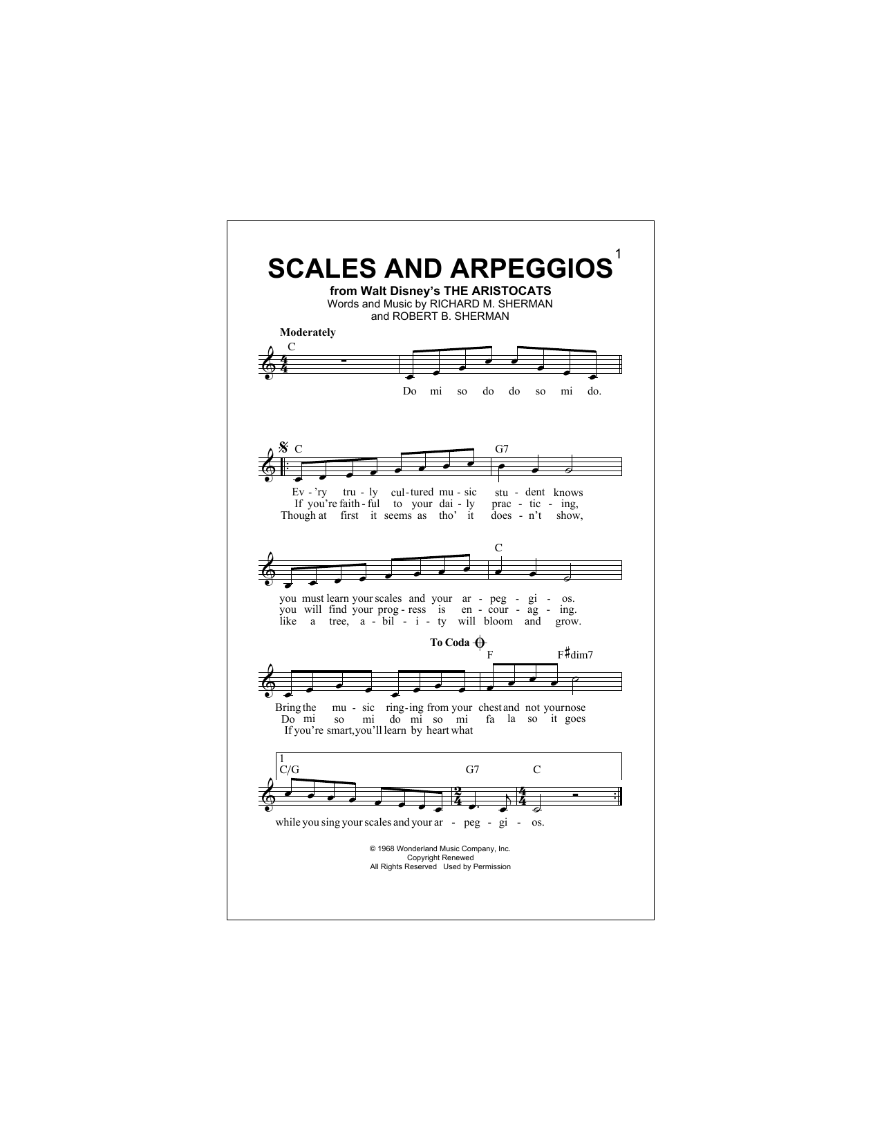 Download or print Robert B. Sherman Scales And Arpeggios sheet music, chords and digital score arranged for Lead Sheet / Fake Book. This Children score includes 2 page(s).