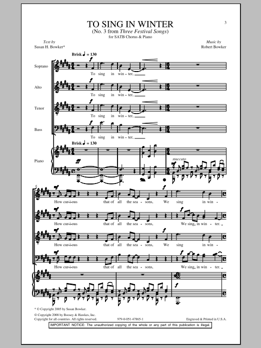 Download or print Robert Bowker To Sing In Winter sheet music, chords and digital score arranged for SATB Choir. This Concert score includes 10 page(s).