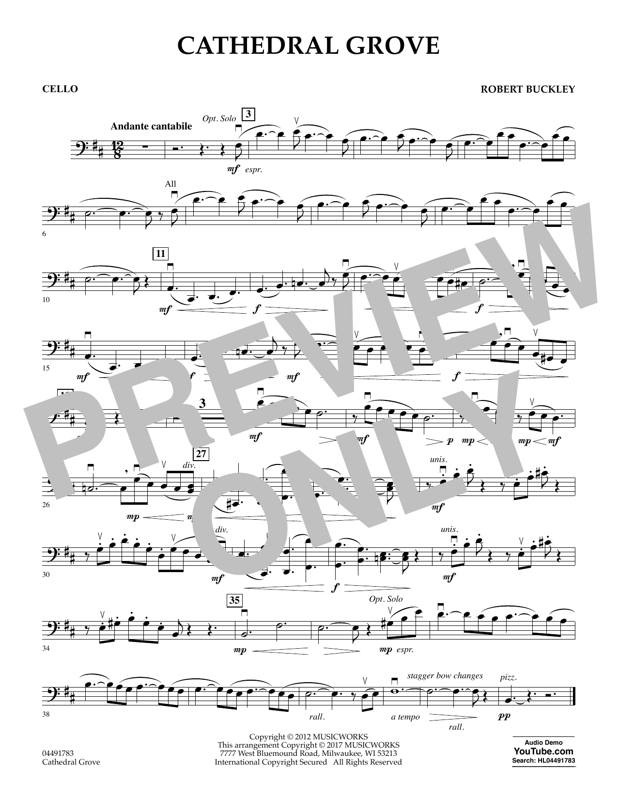 Download or print Robert Buckley Cathedral Grove - Cello sheet music, chords and digital score arranged for Orchestra. This Concert score includes 1 page(s).