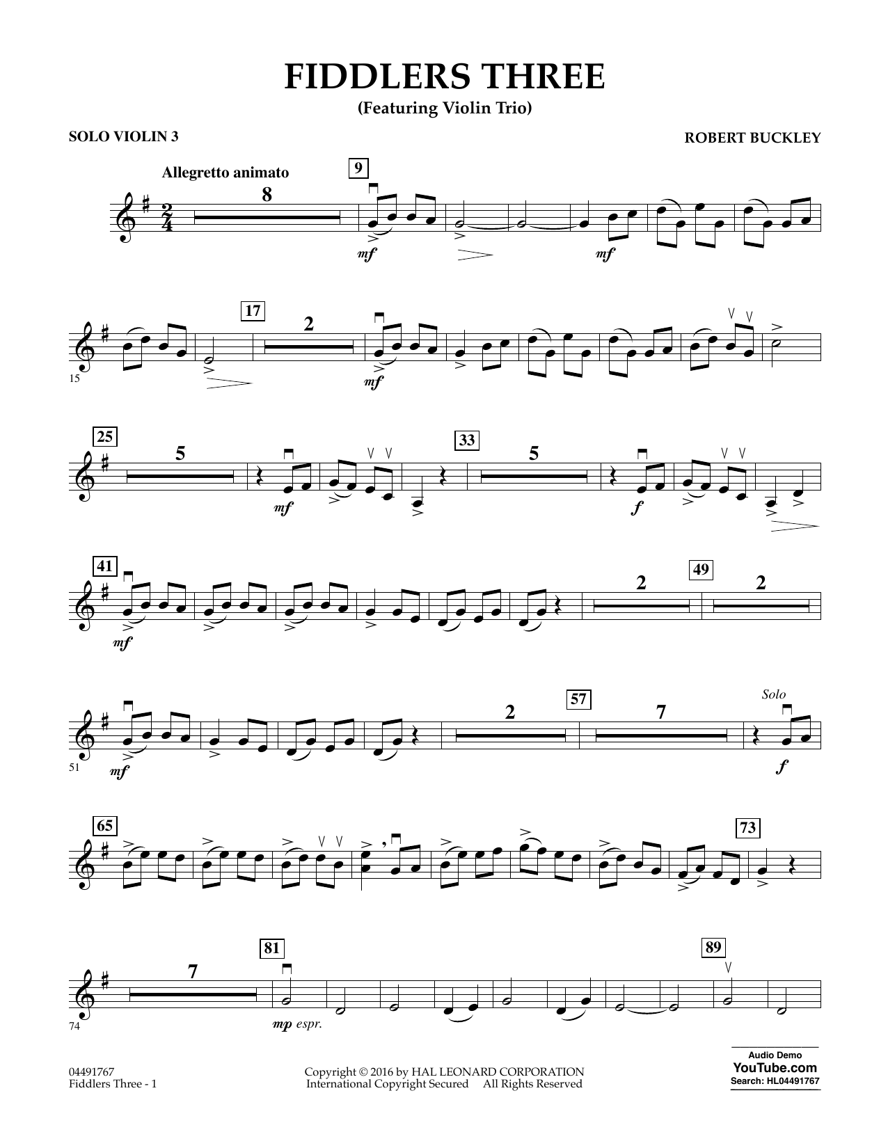 Download or print Robert Buckley Fiddlers Three - Solo Violin 3 sheet music, chords and digital score arranged for Orchestra. This Pop score includes 2 page(s).
