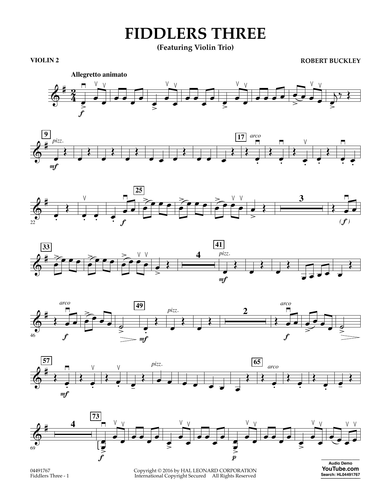 Download or print Robert Buckley Fiddlers Three - Violin 2 sheet music, chords and digital score arranged for Orchestra. This Pop score includes 2 page(s).