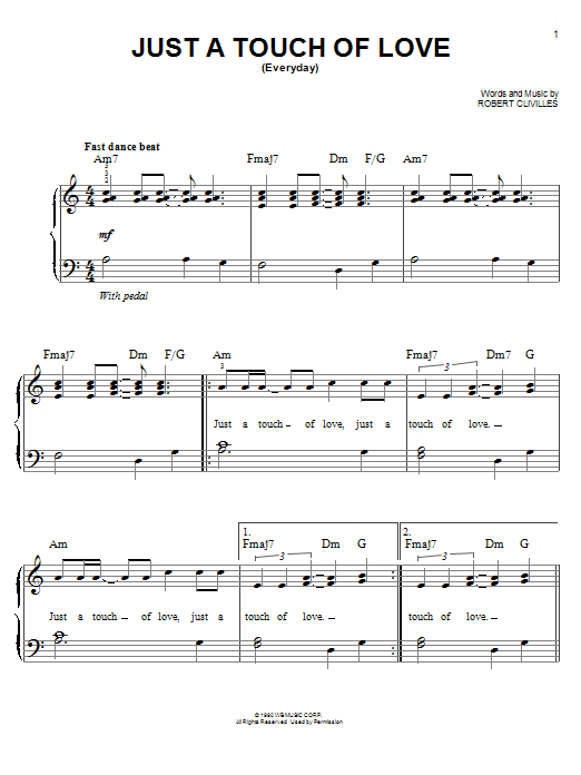 Download or print C & C Music Factory Just A Touch Of Love (Everyday) sheet music, chords and digital score arranged for Easy Piano. This Pop score includes 4 page(s).