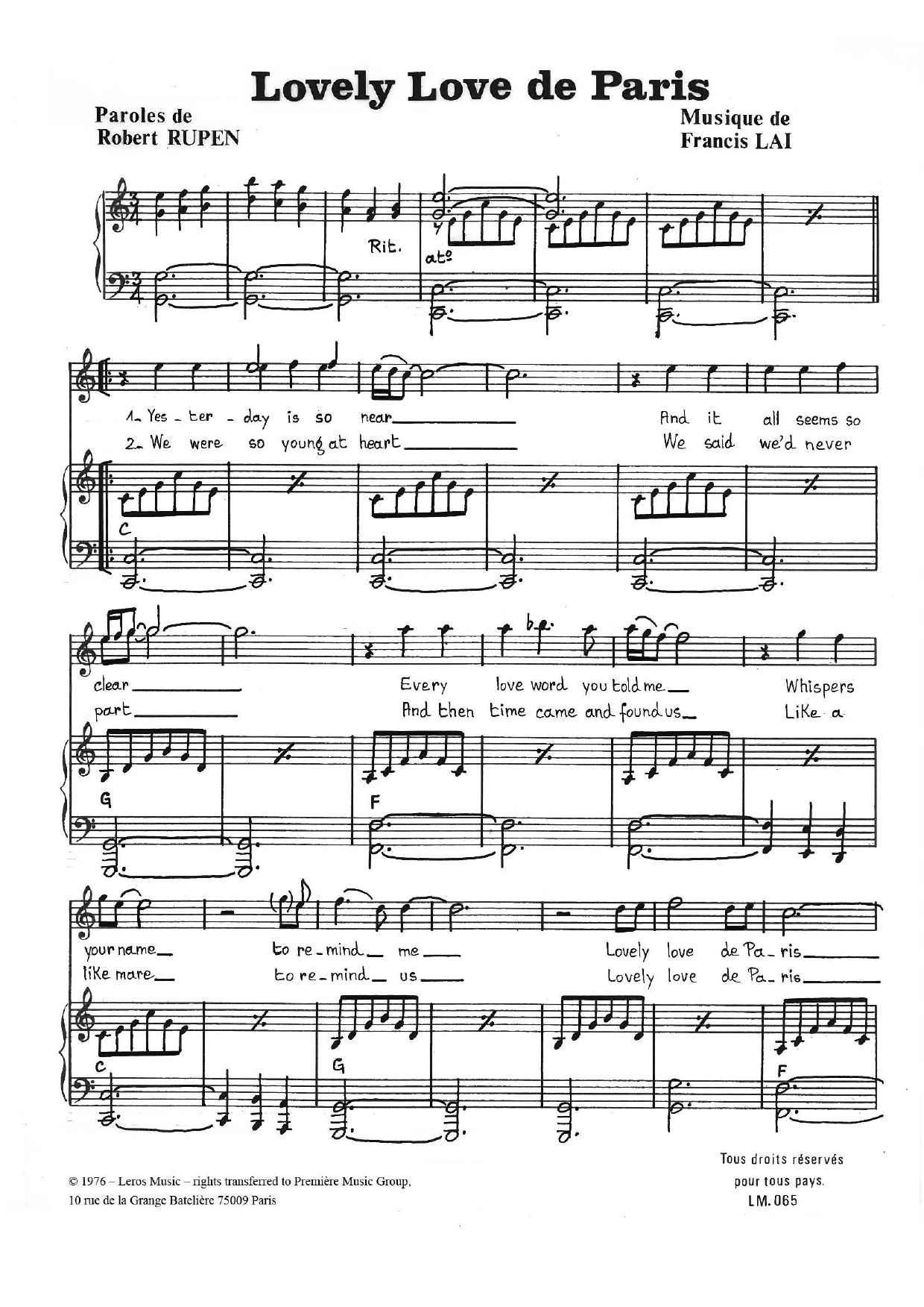 Quick facts Lovely Love De Paris about digital sheet music