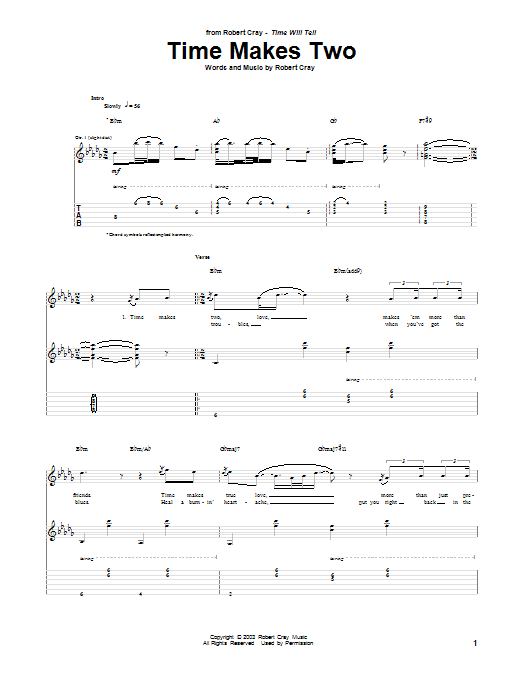 Download or print Robert Cray Time Makes Two sheet music, chords and digital score arranged for Guitar Tab. This Blues score includes 8 page(s).