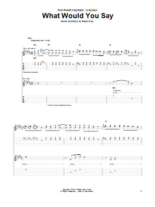 Download or print Robert Cray What Would You Say sheet music, chords and digital score arranged for Guitar Tab. This Blues score includes 15 page(s).
