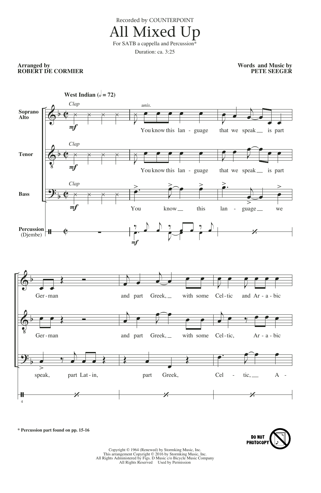 Download or print Robert DeCormier All Mixed Up sheet music, chords and digital score arranged for SATB Choir. This Pop score includes 15 page(s).