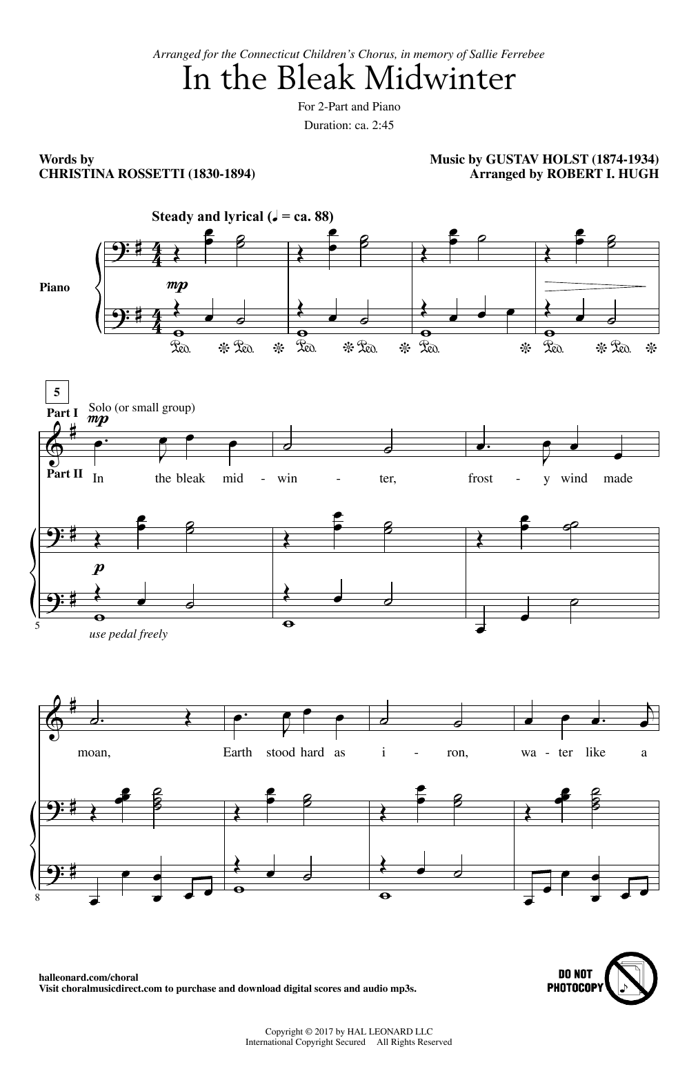 Download or print Robert I. Hugh In The Bleak Midwinter sheet music, chords and digital score arranged for 2-Part Choir. This Christmas score includes 8 page(s).