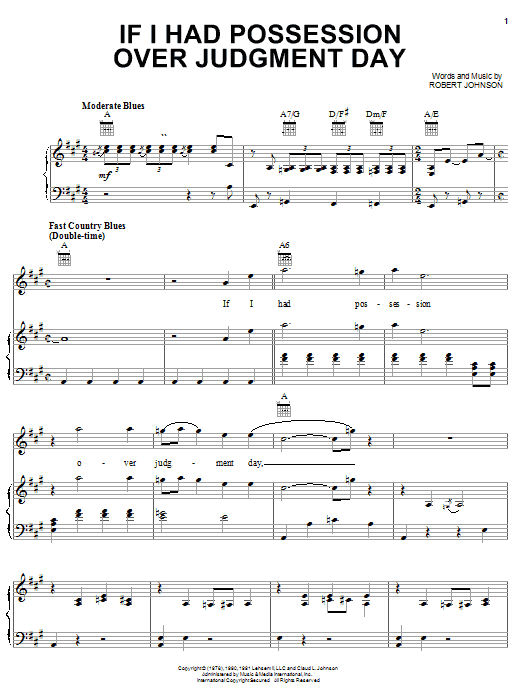 Download or print Robert Johnson If I Had Possession Over Judgment Day sheet music, chords and digital score arranged for Piano, Vocal & Guitar Chords (Right-Hand Melody). This Blues score includes 10 page(s).