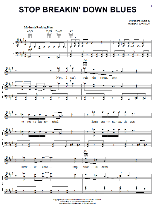 Quick facts Stop Breakin' Down Blues about digital sheet music