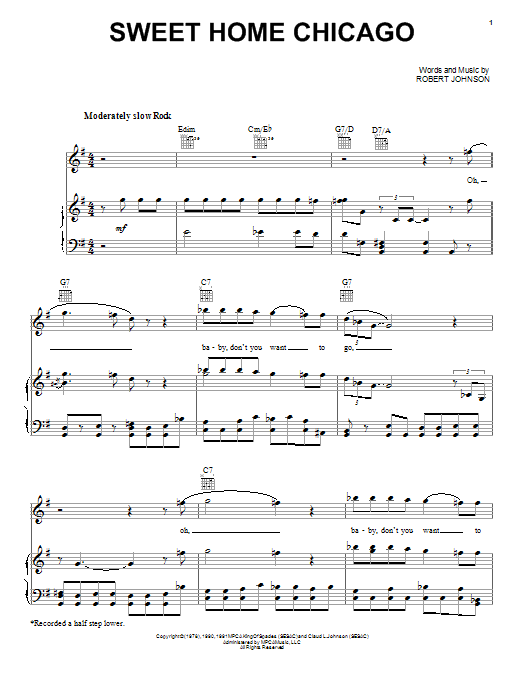 Download or print Robert Johnson Sweet Home Chicago sheet music, chords and digital score arranged for Guitar Tab. This Blues score includes 7 page(s).