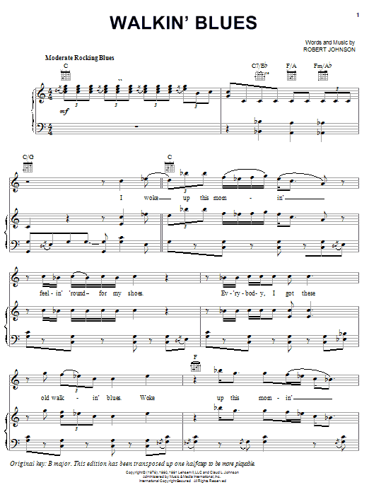 Download or print Robert Johnson Walkin' Blues sheet music, chords and digital score arranged for Guitar Tab (Single Guitar). This Blues score includes 8 page(s).