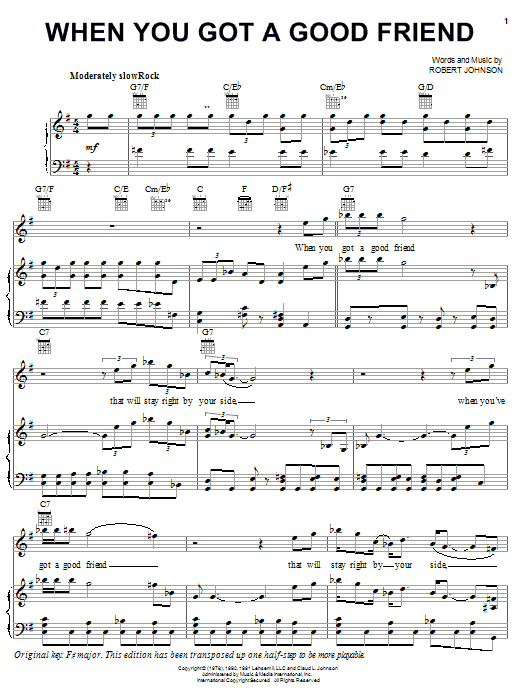 Download or print Robert Johnson When You Got A Good Friend sheet music, chords and digital score arranged for Easy Guitar Tab. This Blues score includes 2 page(s).