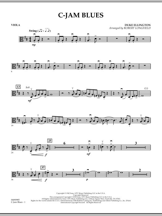 Download or print Robert Longfield C-Jam Blues - Viola sheet music, chords and digital score arranged for Orchestra. This Jazz score includes 2 page(s).