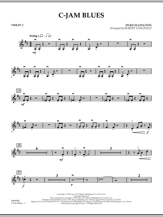 Download or print Robert Longfield C-Jam Blues - Violin 2 sheet music, chords and digital score arranged for Orchestra. This Jazz score includes 2 page(s).