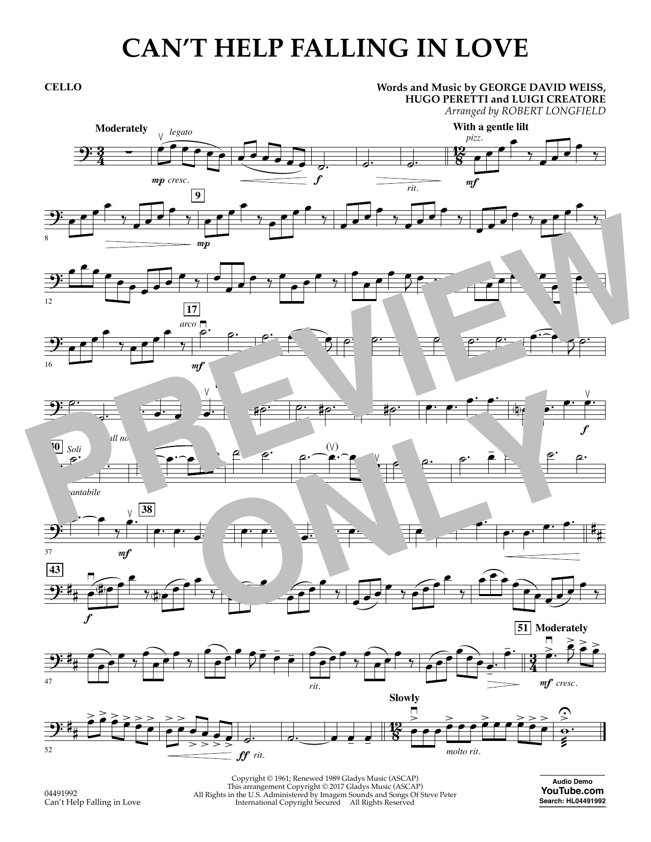 Download or print Robert Longfield Can't Help Falling in Love - Cello sheet music, chords and digital score arranged for Orchestra. This Pop score includes 1 page(s).