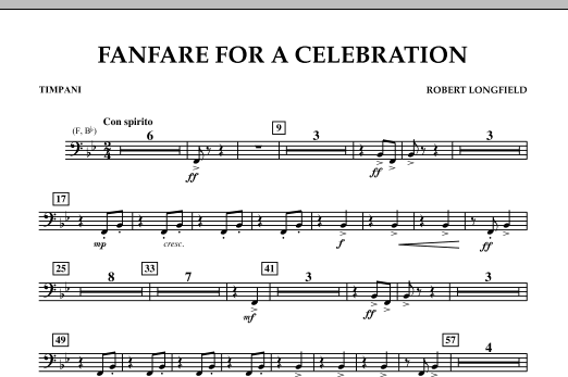 Download or print Robert Longfield Fanfare For A Celebration - Timpani sheet music, chords and digital score arranged for Concert Band. This Contest score includes 1 page(s).