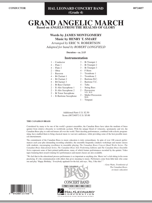Download or print Robert Longfield Grand Angelic March - Full Score sheet music, chords and digital score arranged for Concert Band. This Concert score includes 10 page(s).