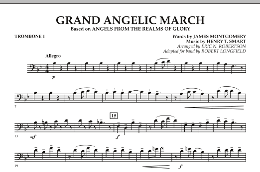 Download or print Robert Longfield Grand Angelic March - Trombone 1 sheet music, chords and digital score arranged for Concert Band. This Concert score includes 1 page(s).
