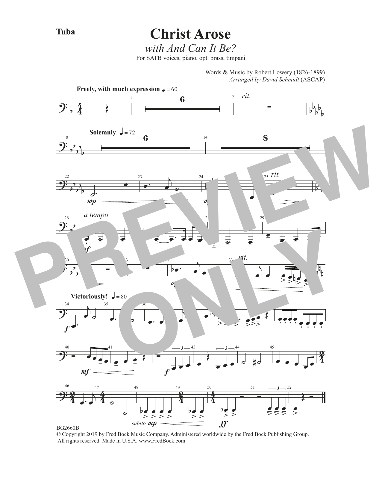 Download or print Robert Lowry Christ Arose (with And Can It Be?) (arr. David Schmidt) - Tuba sheet music, chords and digital score arranged for Choir Instrumental Pak. This Easter score includes 1 page(s).