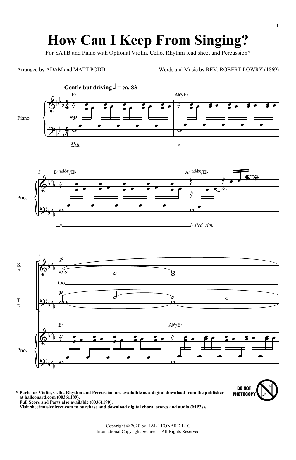 Download or print Robert Lowry How Can I Keep From Singing (arr. Matt and Adam Podd) sheet music, chords and digital score arranged for SSA Choir. This Inspirational score includes 14 page(s).