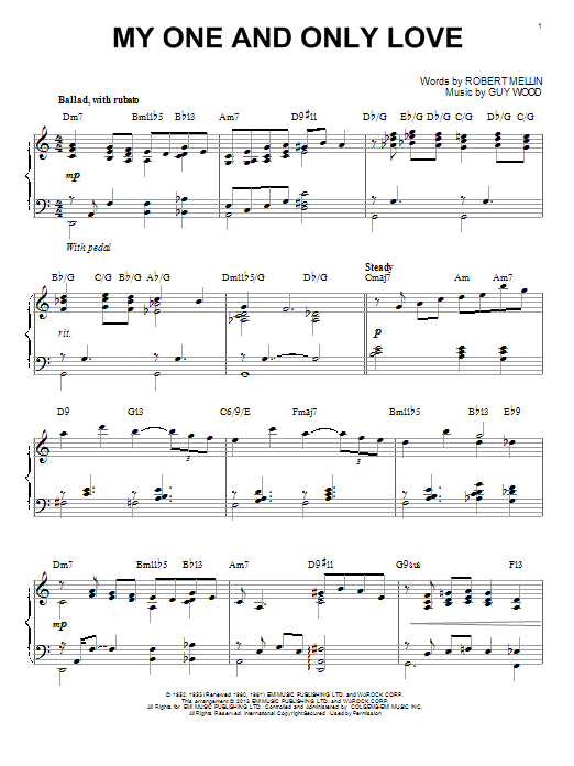 Download or print Robert Mellin My One And Only Love (arr. Brent Edstrom) sheet music, chords and digital score arranged for Piano Solo. This Jazz score includes 4 page(s).