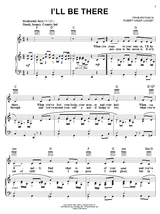 Download or print Robert Nassif-Lindsey I'll Be There sheet music, chords and digital score arranged for Piano, Vocal & Guitar Chords (Right-Hand Melody). This Pop score includes 4 page(s).
