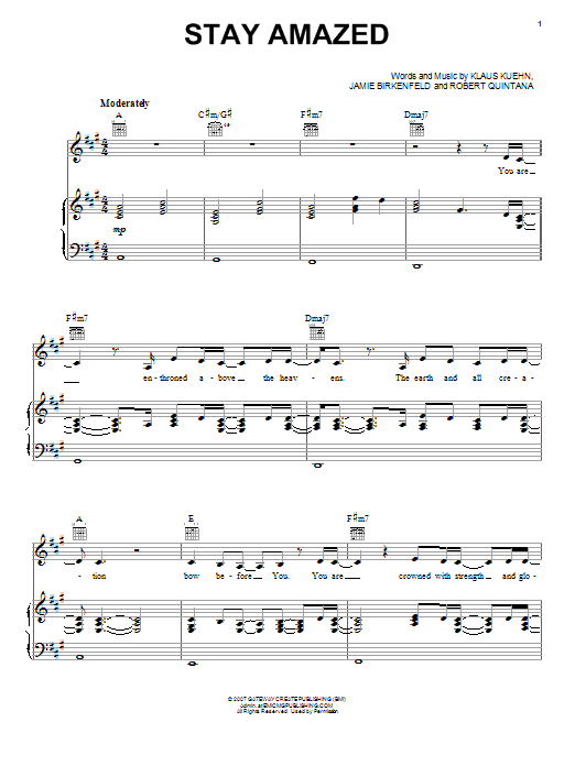 Download or print Gateway Worship Stay Amazed sheet music, chords and digital score arranged for Piano, Vocal & Guitar Chords (Right-Hand Melody). This Christian score includes 5 page(s).
