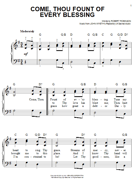 Quick facts Come, Thou Fount Of Every Blessing about digital sheet music